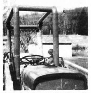 I made this roll cage out of 3-in. steel pipe for my Deere 1530 tractor. I also put seatbelts on the tractor and I always use them. To remove the roll cage, all I have to do is remove a pin on each mounting bracket at the rear and remove 4 bolts on each side up front. The rear upright of the cage is fitted with a rock guard consisting of expanded metal mesh. (W.A. Gibbs, Rt 1 Box 54 Elmwood, Tenn 28560)