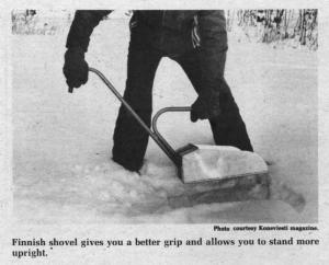 "The second stub handle provides a more balanced grip, allowing the operator to increase work output," says the manufacturer of the Pekve shovel. "It can be used in place of an ordinary shovel in almost every task where loose materials are handled.