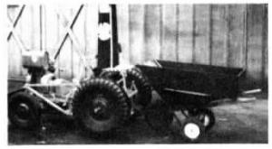 I got the idea for this modified wheelbarrow from an article in FARM SHOW. I put two wheels at the back and welded a pin to the front so I can pull it like a trailer. I also put extension sides on the wheelbarrow for hauling larger bulky loads without spilling. ft really comes in handy for both small and large jobs. The tractor in the photo is a 1947 Gibson that I restored last winter. It's steered by a lever and was designed without a hood over the engine. (Carl Park 1310 E 6th St., Hobart Ind. 46342)