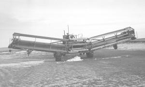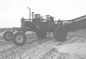 "I started out using the combine's Ford 360 gas engine, but it used too much fuel so I replaced it two years ago with the Deutz diesel engine which came out of a 1-ton Du-ally pickup. It's fuel efficient but pulls pretty hard when going up hills or on soft ground. Since I installed it we've had two very wet years with hard pulling conditions, yet it has used only about 3 gallons of diesel per hour compared to almost 12 gallons of gas per hour used by the Ford engine.