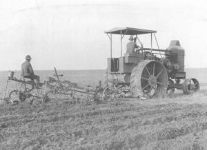 The fellows operating this plow-plant rig behind an 18-35 Rumley Oil-Pull tractor would be surprised to learn that many people today think no-till is a new concept. They were planting corn as they plowed with this rig back in the early 1920's.