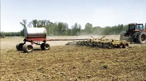The tillage rigs include a 28-ft. wide disk harrow with a 29-ft., hydraulic-fold roller on back; a 27-ft. field cultivator pulling a 500-gal. stainless steel nurse tank; and a 20-ft. drill equipped with a spring tooth cultivator and roller on front.