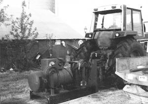 "I carry it on my Case-IH 160 hp tractor and use it to weld corrals, fences, field implements, etc.," says Carlson. "I run the truck transmission in first gear so I can run the tractor at idle and still have enough power to operate the welder. The welder has a lot of capacity. In fact, I can use a 1/4-in. dia. welding rod at 300 amps.