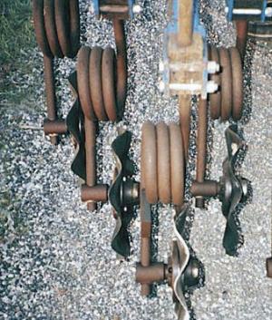 His spring steel coil shanks provide flexibility and always keep the coulter in line, working the soil evenly on both sides while providing constant down pressure.