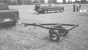 The Westboro, Wis., manufacturer's 15-ft. long steel trailer features a pair of 8-in. caster wheels on back. A spring-loaded pin that serves as a lock on front is double-actuating so when the trailer tongue is locked in place, its rear wheels are unlocked to caster and vice versa.