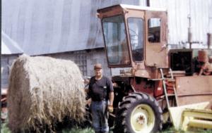 My brother John and I recently finished converting an International 303 self-propelled combine into a round bale hauler. We bought the combine from Jim Streeter of Shell Lake, Wis., who had already started work on the project. We call it the Streeter 303 special.