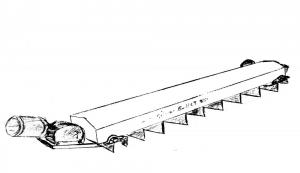 The auger is equipped with rubber paddles spaced 8 in. apart on a drag chain. The paddles simply drag grain into the bin well at the center of the tank. The unit is operated by a geared-down electric motor.