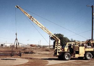 Here's a photo of a clam shell bucket I built 35 years ago. It has a single hydraulic cylinder hanging at the center that opens and closes the bucket. The cylinder pulls up on the center hinge of the bucket. A pair of chains run from the bucket to the boom truck to keep it from swinging too much. This has worked great for me for all these years. (Eugene M. Durand, 5404 Ocotillo, HC 31, Box 1020Z, Roswell, NM 88201)