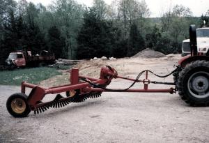 A hydraulic cylinder with an 8-in. stroke and 4-in. bore lifts the rake. "It doesn't take a lot of hydraulic capacity to raise it," he says. "And it doesn't take much horsepower to run it, either.