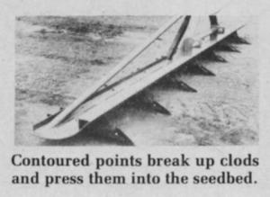 Creasers range in size from the smallest 3-row unit with 30-in. centers to the 10-row with 22-in. centers. They require just 45 to 60 hp. to pull and the teeth in front are replaceable.