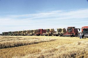 After three years, the Ponoka CFGB project has grown so much that there's not enough work for everybody, according to coordinator, Peter Doornenbal. All of the seed, chemical and fertilizer needed for the projects was donated by local chemical, fertilizer and grain companies. Volunteers from the Camrose Rotary Club canvassed funds for their project through various drives. The Camrose Hutterite Colony got directly involved by adding to the army of combines and manpower. Other individual farmers and machinery dealerships provided combines, balers, trucks and labor to get the job done.