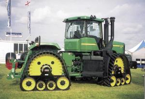It drives directly off the existing tractor axle with no modification. No complicated gearboxes. Existing drive ratios, differentials, and other components are not compromised. The track system pivots independently to the tractor so it always remains flat on the ground regardless of implement weight or pull. With conventional fixed track systems, you can get massive compaction at certain load points on the track.