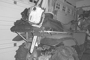 Brain Dexter, Oregon City, Oregon, says it's simply a bracket made of flat steel that bolts to the back rack of his 4-wheeler. He says it's similar to a couple of commercial products being sold for this purpose in retail stores for $80 to $100.