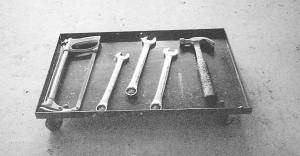 "A rolling tool tray works wonders when I'm working close to the floor. I just roll it along as my project progresses. It measures 17 by 24 in. I custom build them for $40 plus S&H.