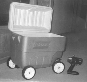 "I've had to lug my cooler full of drinks and ice around softball fields for far too long," says Dan Ewert, Shakopee Minn., who finally went to his shop and came up with what he calls his remote-controlled cooler "solution."