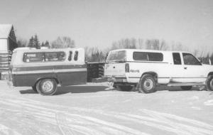 "I bought the pickup trailer at an auction for $100 and it was already road ready," says Jessop. "I cut a hole in the fiberglass topper and inserted a five gallon bucket with the bottom cut off to use as a fill-spout. Roofing tar around the bucket weatherproofs it and the lid still goes on to seal it," he says.
