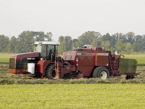No driving over windrows. There's more clearance between the wheels on a 4-WD tractor than on a 2-WD tractor, especially one equipped with dual wheels, says Tom. "As a result, we're not driving on the edges of windrows and packing the hay or straw down so much that the baler can't pick it up. The wide distance between wheels also helps keep the tractor from shaking from side to side."