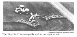The Big Hitch, now available commercially from Parkin Equipment Co., Parkin, Ark., can be adjusted to pull two disk harrows, chisel plows, field cultivators, drills or other similar implements, each 30 to 42 feet wide. However, Talmadge Doss, manager of Parkin Equipment, says the unit is not recommended for row crop planters. (Can you imagine a marker extending 40 feet from one end of the planter? Or, raising and lowering such a marker at row ends or for transport?)