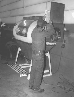 Litchfield does quite a bit of work restoring antique tractors and says he needed a big sand blaster to work on light metal. "Commercial cabinet sandblasters aren't big enough to accommodate things like tractor fenders and hoods. We have a big sandblaster that's engine-driven that we use outside. However, it has such force that it can swell up light metal and warp it. With a smaller cabinet sand blaster there's less pressure and we can use a finer grit."