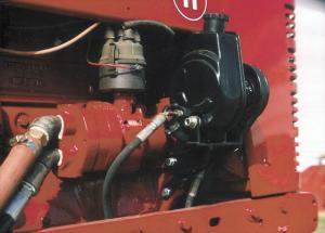From the power steering on the front end to the live hydraulics that power the 3-pt. hitch, Mike Olson's Farmall H is all power. The live hydraulics come from a "jobbers pump" installed between the engine and the distributor. He fabricated the power steering and 3-pt. hitch himself.