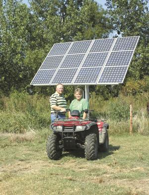 Working with Missouri Valley Renewable Energy and a grant from the Missouri Department of Natural Resources, Fricke installed a Sun Tracker solar panel. His initial cost for a system to pump 10,000 gal. of water a day to his cattle was $12,000. It was 2/3 what the power company wanted and on site where he wanted it. He still needed a separate 12-volt battery and solar charger for his fences, and the water pumping was inconsistent depending on the available light.