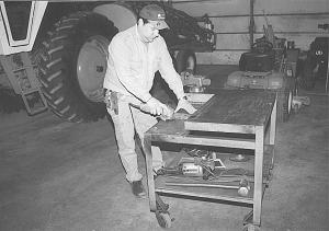 Mike Miller, Athens, Ill.: Mike's moveable workbench has a split-level top which offers several benefits. One is that it makes it easy to hold flat pieces of steel while sawing or grinding because you can slip them under the top level. A second advantage is that when working on a motor, all motor parts can be kept on the upper level while the tools are on the lower level.
