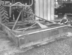 "It does a beautiful job of leveling yards and driveways," says Breazeale. "I use it in my custom business. I can shape up a yard in no time. I use the angled blades to cut loose fill and can set the rear blade at whatever height I want. Once I get the box full of material, I can raise the rear blade without raising the angled blades and spread the material out. The cutting edges on the angled blades are off a road grader and are set 2 in. below the bottom of the I-beam frame. I cut off the inside lip of the I-beams. The outside lip serves as a slide.