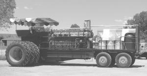 The gigantic machine was built by Neville Dunn, who operates a general engineering shop in Holbrook, New South Wales. One of his interests is unusual tractor restorations and modifications.