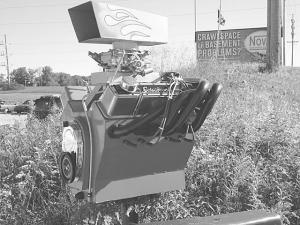 With a shop full of stock car racing parts, his mailbox has a variety of first class accessories bolted and welded on to make it look real.