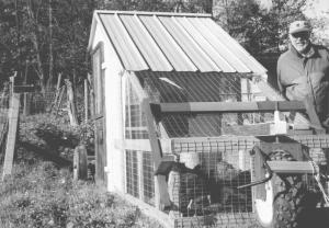 "There is no floor, so I never have to clean it out," Priebe adds. By using old windows and a storm door and leftover metal and lumber from a building project, he kept the cost down to about $80 with new 1 by 4-in. treated lumber and woven wire.