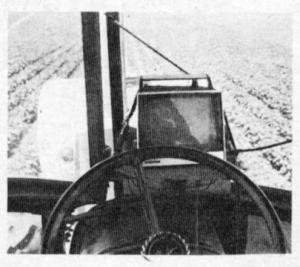 A television camera with a wide angle lens looks out on the field ahead of the cultivation rig. It spots weed problems, then projects them on the TV screen located inside the tractor cab. Jensen can flick electronic controls to turn on 4, 8, or 12 rows of nozzles to apply chemicals where he needs them. On the edge of the field or along roadsides, he can spray hardto-reach places with the handgun operated manually or automatically.