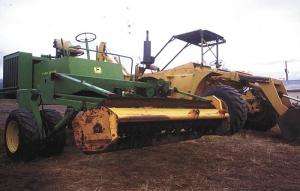 The cutter is the kind used on the state highway, pulled behind a tractor to cut the ditches. Rife bought it for cutting road ditches and around his farm buildings, but he never liked the fact that, since you drove over everything first, it would be laying flat and the cutter would miss it.