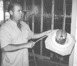 John Marley, Athens, Ill.: This homemade dispenser for electric cable really saves time and effort. It consists of a piece of plywood with a bottomless gallon can bolted to the center of it. The plywood and can hang from the ceiling by a chain that attaches to the center of the board. A roll of electric cable is placed on the board around the can. You can pull off any amount of cable and chain will just keep twisting as needed. Once you cut off the cable, the chain spins back around.