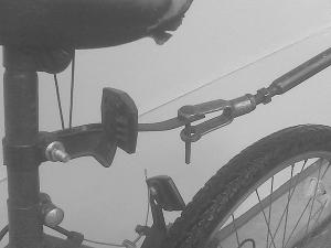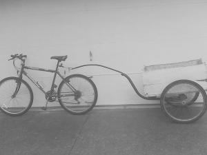 Twenty years ago, he built a cart that he can pull with a mountain bike.