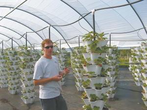 Using a hydroponic system, you can grow crops using conventional fertilizers or grow organic crops almost anywhere, says Blevins. Each section is 20 in. in diameter, 8 in. in depth, and contains 6 planting ports, 4 in. wide and 10 in. apart. Each section will hold about 1/2 cubic ft. of growing medium. A tower stacked 6 units high will hold 36 plants and is 4 ft. high when assembled. The towers can be stacked to the height you desire. They're designed to save land, water, fertilizer, power, and labor. They're easy to harvest and result in fewer rodents and weed problems, with less damage to the fruit in rainy conditions. Six black units sell for $68. Six terra-cotta for $78. Six white units sell for $78. (Prices subject to change.) They make a great gift for family, friends, or business associates. There are 240 units per pallet. Extra discounts for volume orders. Soon other exciting products will be available on the company's website.
