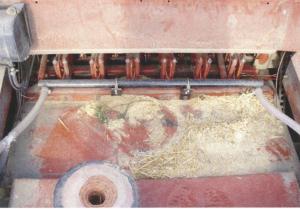 Symes farms 1,100 acres near Gatwick Airport in London. He says he's now fitting a second blower to his MF 185 baler and that the idea should work on any baler.