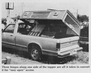 Hinge Kit For Pickup Toppers PICKUPS Accessories 7-5-23 "With a hinge kit on your truck topper you can easily get at cargo in the front of the pickup bed without having to crawl into the truck on your hands and knees," says Gale Harsha, Kellogg, Iowa, manufacturer of a new hinge kit for pickup toppers.
