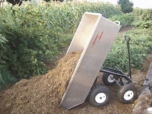 The wagon comes in three sizes 6, 9 and 12 cu. ft. with a maximum capacity of 2,000 lbs. on the 12 cu. ft. model. Sizes vary from 25 to 30 1/2-in. widths and 47 to 60-in. lengths. The smaller Model 1000 ($315) has a 10-in. depth, while the Model 1027 ($340) and Model 2000 ($418) are 13 in. deep. A pony shaft is an extra $67.