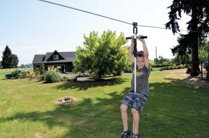 “The safety aspect is a good reason for buying from us. Not all parts are safe on a zipline,” Olszewski says. “Some homemade ones use a rope and pulley, which shakes and can come apart. Rope has give and stretches so you can hit the ground.”