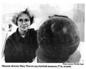 Ripley's Believe It Or Not recently held a nationwide contest to find the world's largest hairball and the largest one they found was 33 in. dia. The Kansas hairball could have won the contest but Warren says the museum wanted to hang on to the ball because it fits in well with an exhibit they plan to open soon on the local beef industry.