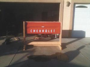 Chevy Pickup Desk FARM HOME Furniture My dad made this desk for me as a Christmas present this year It’s a tailgate from a 1967 Chevy pickup He restored the tailgate and then designed a wood frame to hold it The tailgate pivots down for work supported by two short pieces of steel cable He attached a flat writing surface to the back side of the tailgate This desk will probably last me forever and will end up in my garage some day when I’m old enough to have one Johnny Forcht Pahrump Nevada