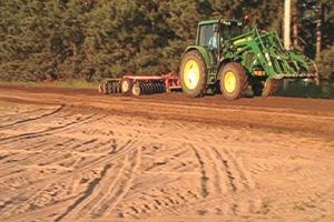 Farm equipment is all that is needed to prepare the soil and mix the solution. An industrial roller or packer will do