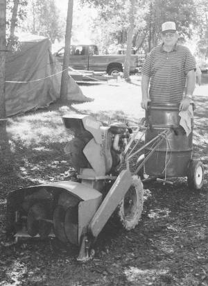 He had a little misfortune at a recent show. “I was driving through a muddy area and the hitch popped out of the bracket on the snowblower. I ended up stranded in the barrel while the snowblower kept going ahead of me. I had to jump off the barrel and run up to the snowblower to stop it.”