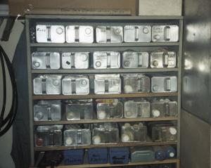 Harvey Malon, Rapid City, S. Dak.: “Ordinary 1-gal. square metal cans work great to store nuts, bolts, screws and small parts. Cut out one side of the can and then build a simple cupboard with shelves as deep as the cans and as wide as you want. The distance between the cans should be about 1 1/2 the depth of the cans so that you can overload them and still see what’s in them. Be sure to put a back on the cupboard. Mark the cans with a masking pen.”