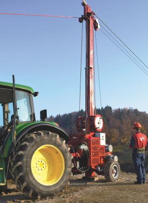 Winch Tower Pulls Logs Out Of The Woods MISCELLANEOUS EQUIPMENT Miscellaneous Loggers who cut and drag trees out of wood lots will soon have a new way to get the job done A European company Tajfun introduced its new Mobile Skyline in early 2014 in Europe and it’s expected to be on the market in the U S later in the year The company currently sells its logging winches digital wood measuring devices and firewood processing products in 50 countries around the world The new skyline powered by a 40 hp or larger tractor pto is like bringing a ski lift to a logging operation complete with cables and electronically operated winches Tajfun’s U S representative Tamara Zalar says the winch tower will be ideal for anyone who needs to move logs 200 to 300 yards from the deep woods to a staging location First the power unit with its 20-ft tall cable tower is set up Three anchor lines hold the cable tower secure Then 3 haulback lines are unrolled from the power unit and extended into the woods The lines are anchored on a sturdy tree at least 16 in in dia The retrieval device is a haulback line carriage that moves on the cables operated electronically with a hand-held remote “Dragging logs out of the woods can be a 2-person operation with this tower system ” Zalar says “One person is near the power unit which uses a hydraulic motor to raise and lower the tower and operate the cable drums The other person connects the winch line and carriage to the log ” Logs can be lifted and hauled or dragged on the ground The carriage speed is adjustable and it stops automatically if it’s overloaded Contact: FARM SHOW Followup Tamara Zalar Tajfun USA 731 James St Suite 225 Syracuse N Y 13203 ph 315 439-2733; Tamara Zalar@tajfun com