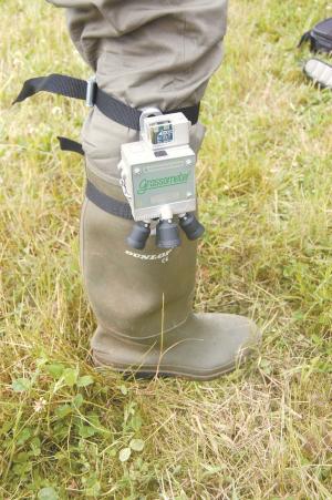 Boot-Mounted Grass Monitor DAIRY EQUIPMENT & IDEAS This new grass monitor mounts on top of a boot and uses ultrasound sensors to automatically measure and track grass growth as you go about your field chores Knowing how much growth there is lets you know how much feed value there is and can help you do a better job of managing your pastures throughout the growing season says the company The Grassometer from Mole Valley Farmers a farmer’s cooperative in England uses 4 ultrasound sensors They automatically take thousands of grass height and density measurements across the pasture as you walk and instantaneously calculate the kilograms of dry matter per hectare The readings are instantly shown on a digital display The unit can also relay the information back to your smartphone or computer The company says the unit is especially useful for anyone using a rotational grazing system It sells for about $2 700 Contact: FARM SHOW Followup Mole Valley Forage Services ph 01769 576405; www fwi co uk/articles/27/05/2014/144734/grassland-and-muck-2014-video-revolutionary-grass-monitor-on htm
