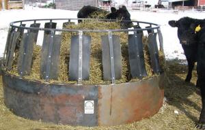 “The belting design allows the use of a narrow opening that helps contain the hay,” says Kurtz. “As the animals put their heads in the feeder, the belts bend in alongside their necks. As they back out, the belts flip inward keeping excess hay in the feeder.”