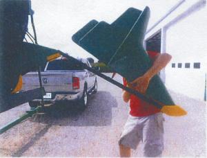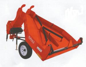 The accumulator hitches to the baler drawbar and has 2 wheels on back, which support a floor that’s permanently mounted at a 45 degree angle. A twisted chute mounts on front of the machine and hooks up to the baler chamber. (www.kuhnsmfg.com; ph 877 296-5851)