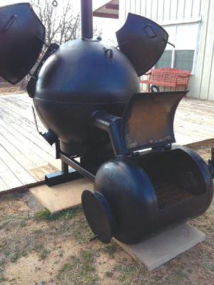 Joel Lawler of Bowie, Texas, used the rounded ends of a propane tank to fabricate this heavy-duty smoker grill. A second smaller tank serves as the firebox.