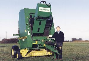 "To our knowledge, it's the first plastic wrap for round bales that's designed to replace twine for tying bales," says Kurt Madsen, the Danish farmer who invented "Binder-Wrap". It's an attachment that fits any round baler and wraps a bale tight enough to hold it together. As a bonus, the plastic also protects bales from rain and snow.